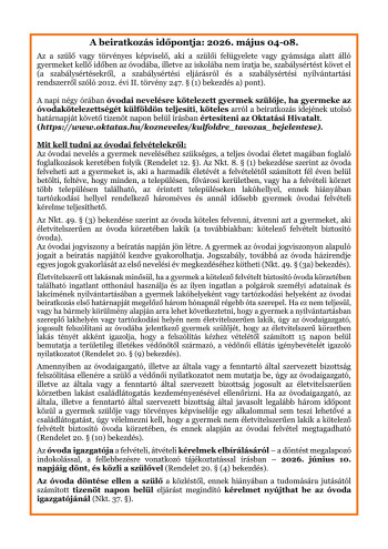 Részletes információ (óvodai körzethatárok, egyéb beiratkozással kapcsolatos információk elérhetők: